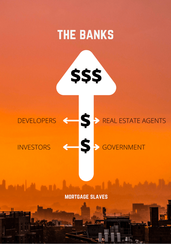 Housing has been financialised so let’s follow the money. What are the $$ flows? We know the players: governments, banks and other financial institutions, developers, builders, real estate agents, valuers, lawyers, landlords, households, landowners –– some individuals and entities are more than one type of player. Who are the winners, who are the losers in $$ terms?