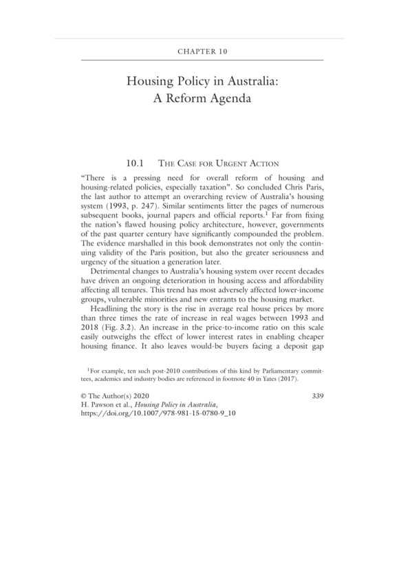 A review of Housing policy in Australia: a case for system reform by Hal Pawson, Vivienne Milligan and Judith Yates (Palgrave Macmillan 2020)